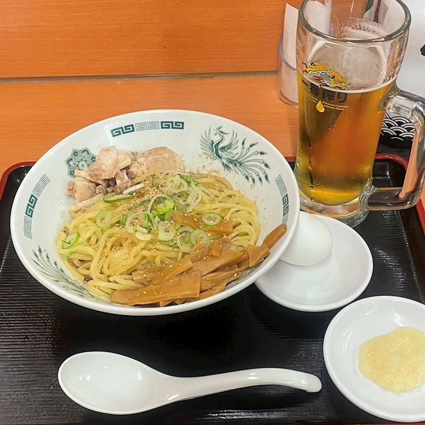 汁なしラーメンとビールの組み合わせ