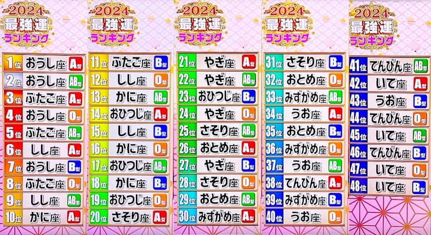 最強運ランキングを