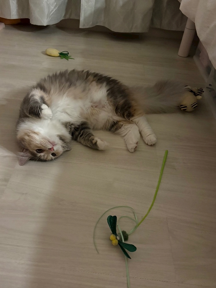 部屋中に猫のおもちゃ転がってる😂