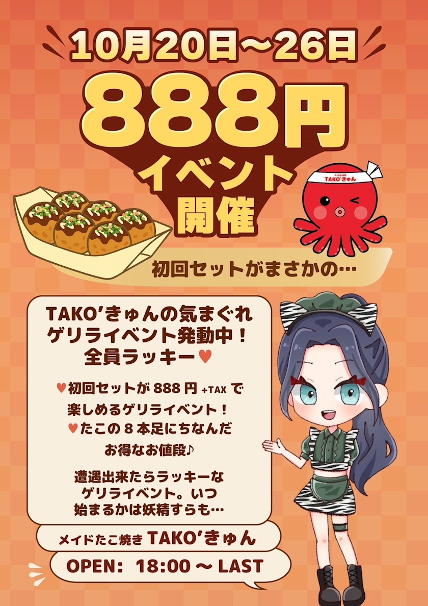 ゲリライベント🐙 - てん - メイドたこ焼き TAKOきゅん・タコキュン - 船橋のコンカフェ