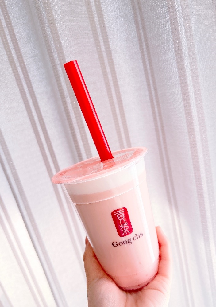 今日はゴンチャのいちご杏仁飲んだよ🍓