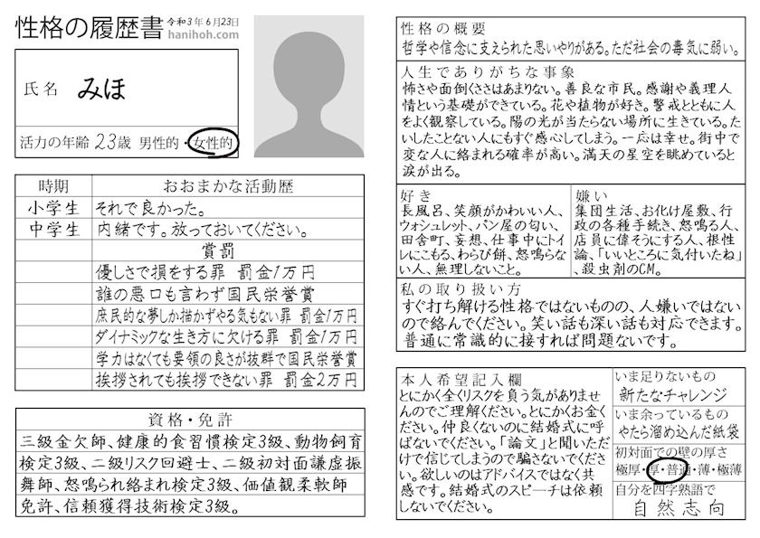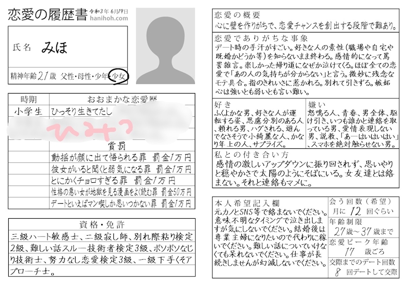 性格履歴書と恋愛履歴書