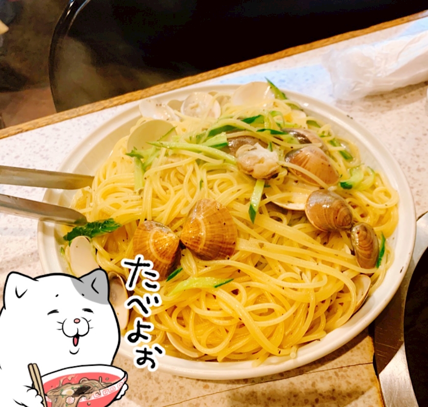 「今日は炒飯じゃなくてはまぐりパスタがあるよ〜!」って言うので