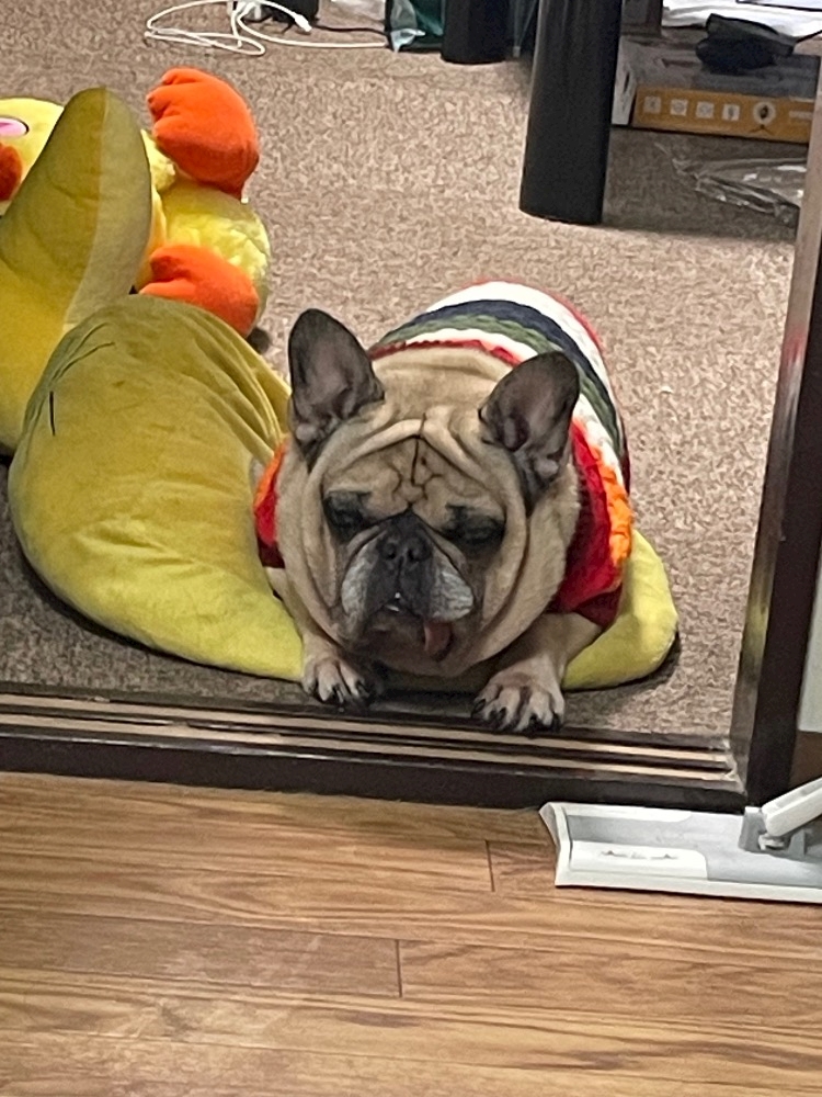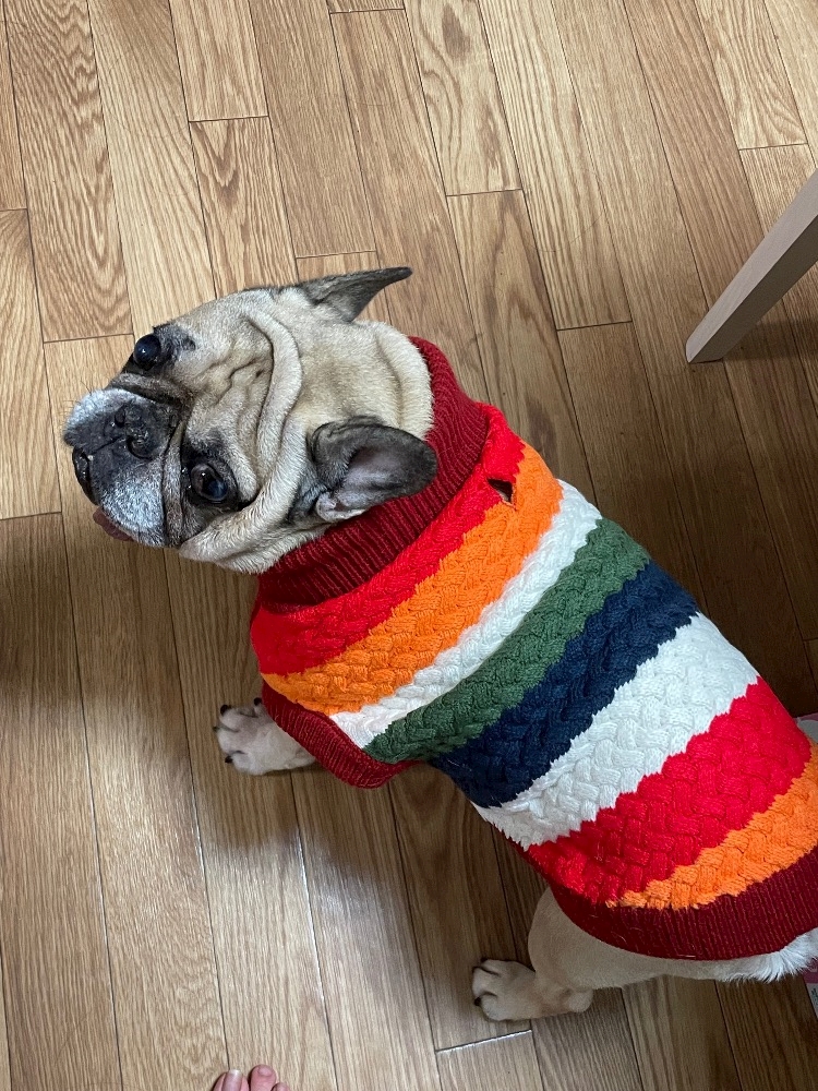この時期はお散歩とか部屋の中とか寒いから犬にもあったかい服着せる家が多いみたい