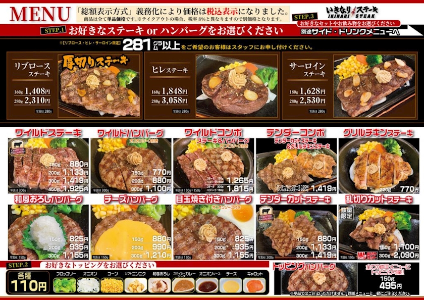 12月からいきなりステーキのメニューが