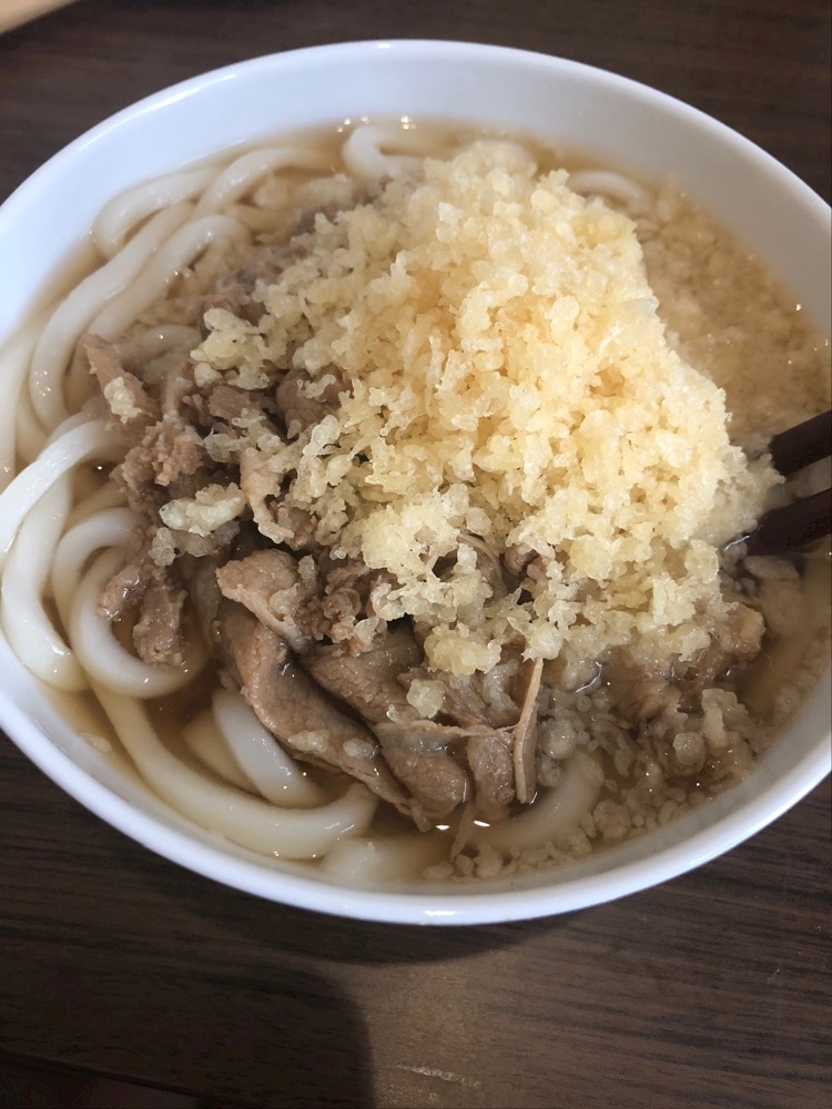 これもウエストの肉うどんver。揚げ玉モリモリで😇