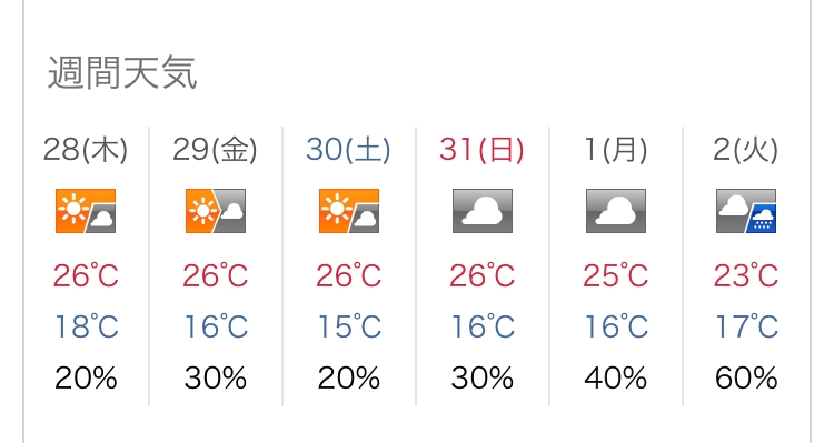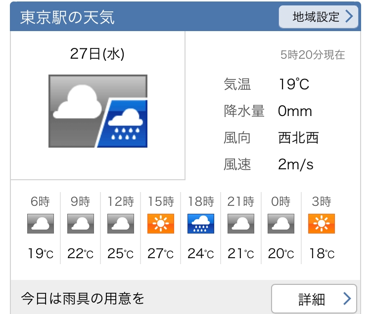 最高気温は27℃の予報です。