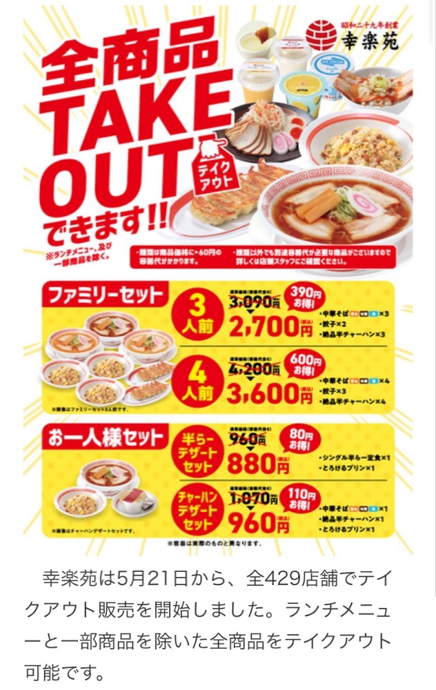 幸楽苑では5月21日から