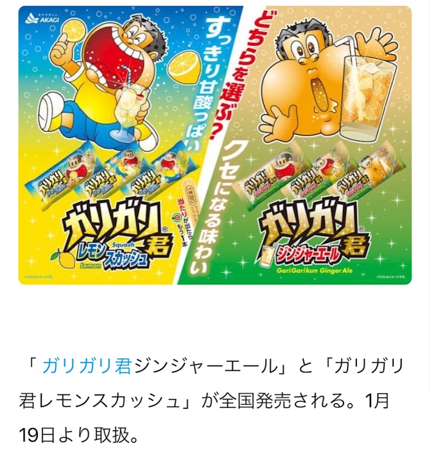 「ガリガリ 君 ジンジャー エール」 「ガリガリ 君 レモンスカッシュ」 刺激的な 2つの 炭酸 フレーバー!