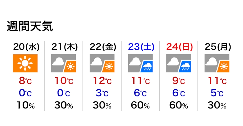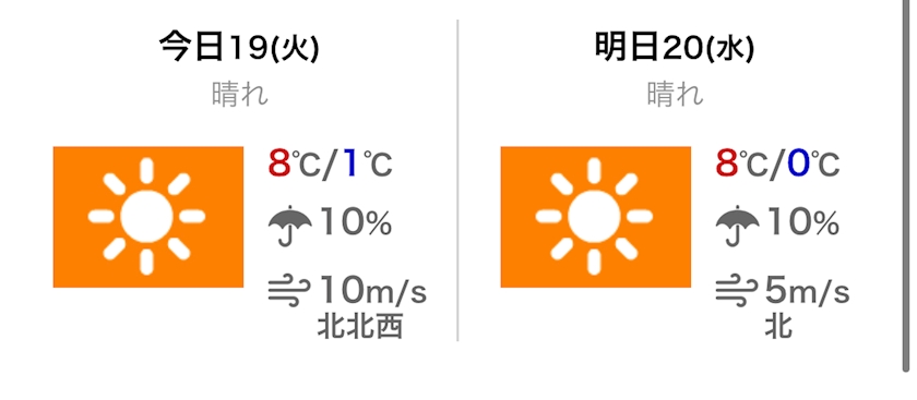 最高気温は8℃の予報です。