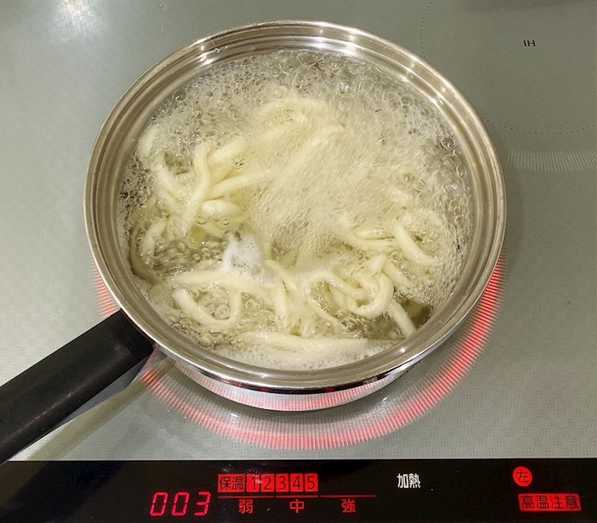 うどんをゆでて