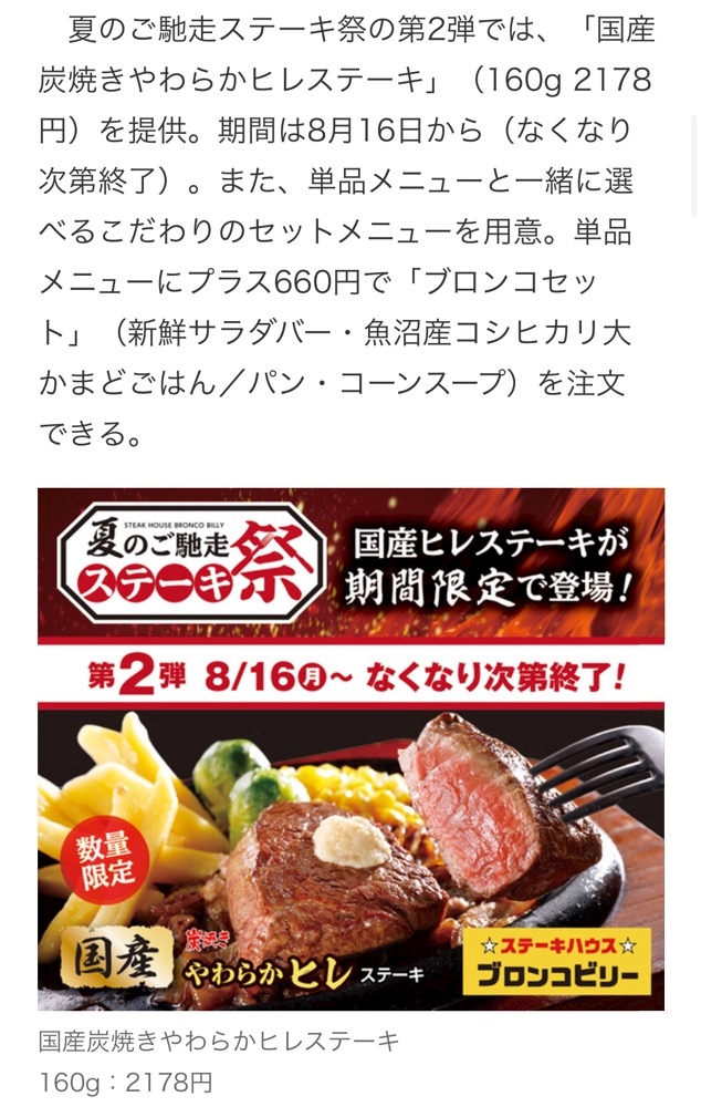 「夏のご馳走ステーキ祭」