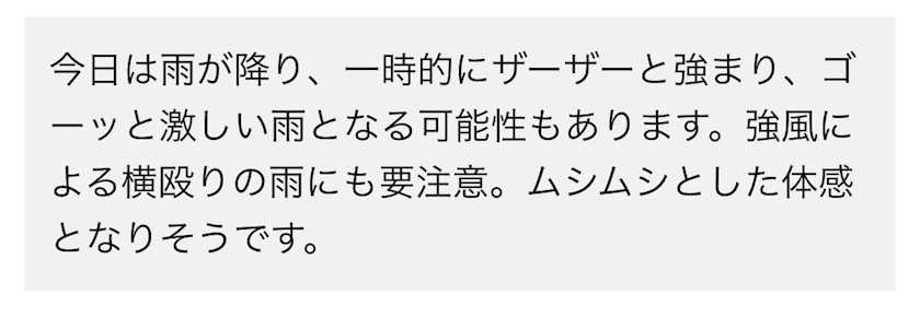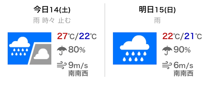 今日は雨時々曇りで