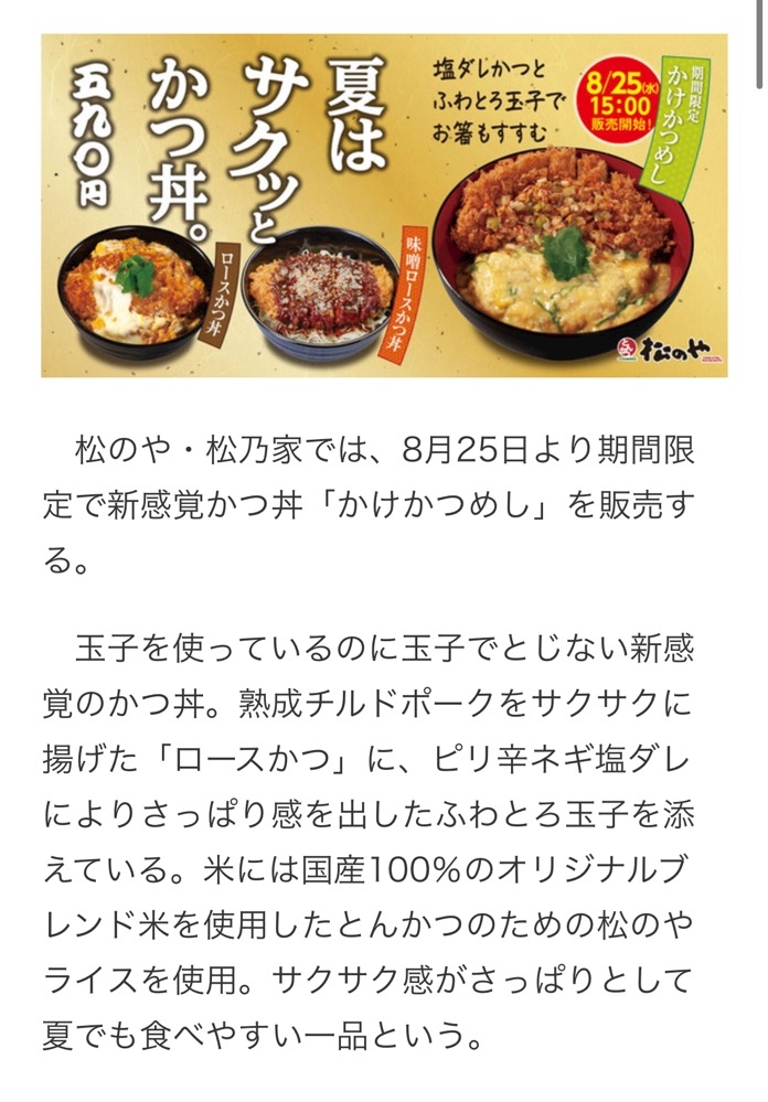 松のやに「かけかつめし」登場