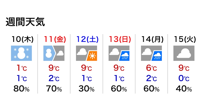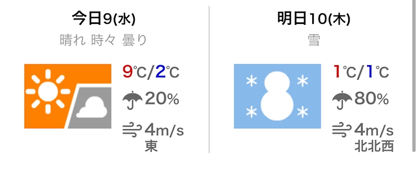 最高気温は9℃の予報です。