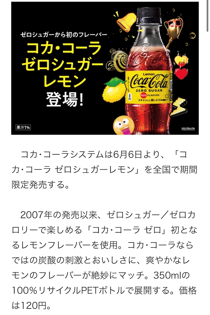 コカ・コーラ ゼロシュガーレモン♪
