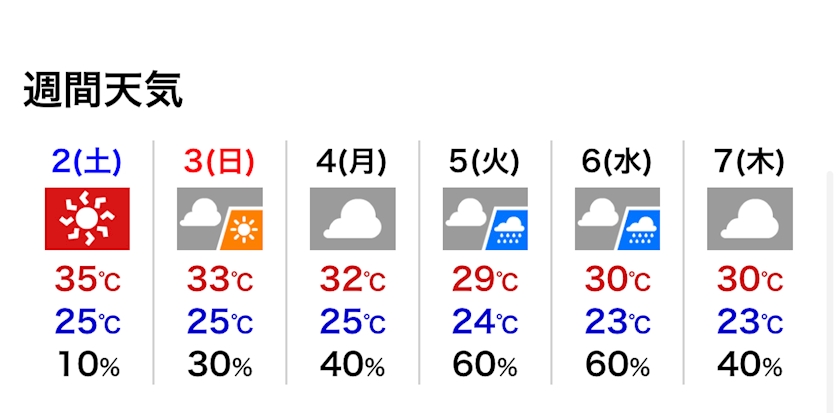 最高気温は36℃の予報です。