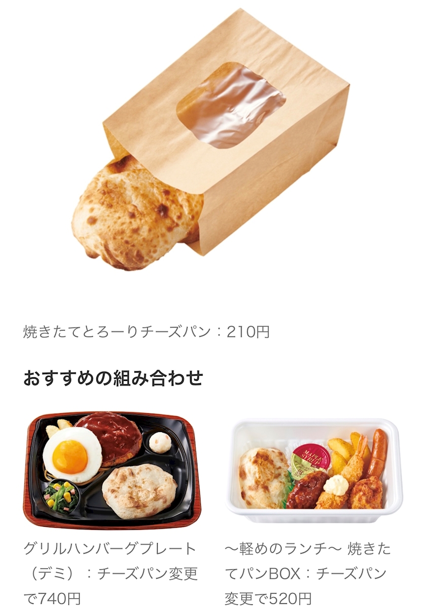 「焼きたてとろーりチーズパン」プラス70円でライスから変更可