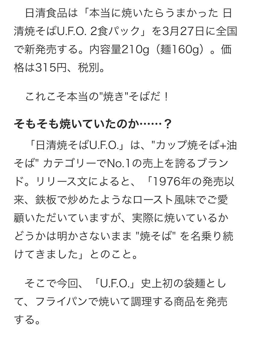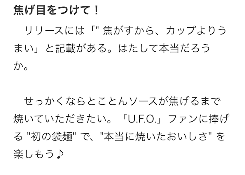 『本当に焼きたらうまかった日清焼そばU.F.O.』