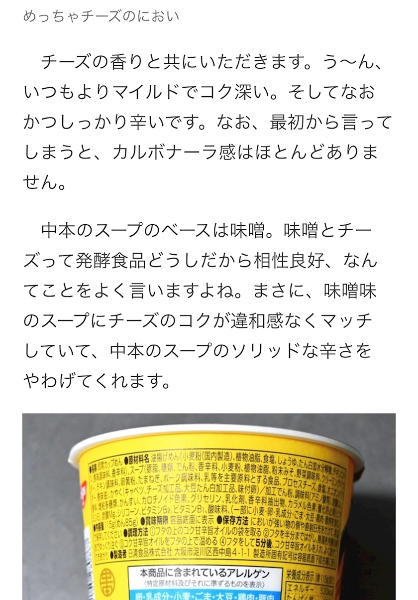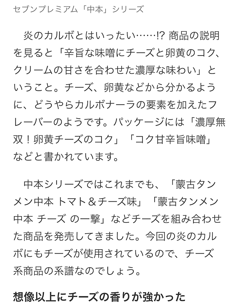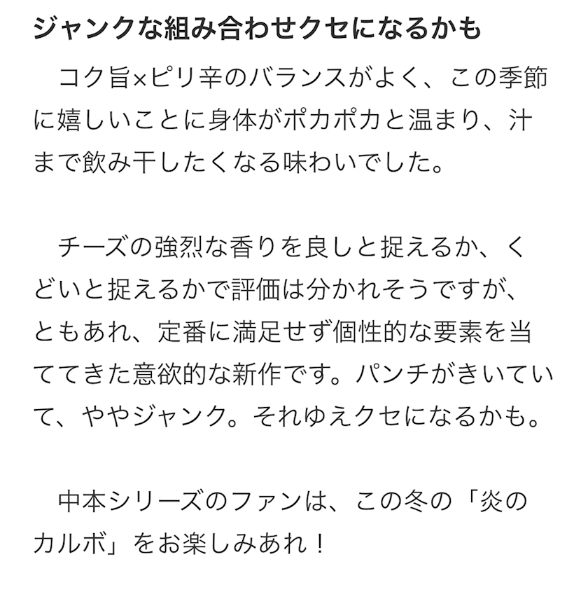 『蒙古タンメン中本 炎のカルボ』