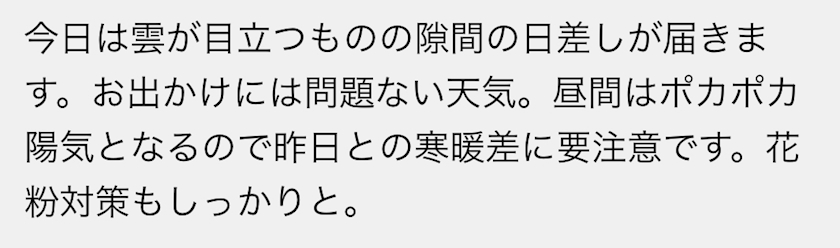 今日は曇り時々晴れで