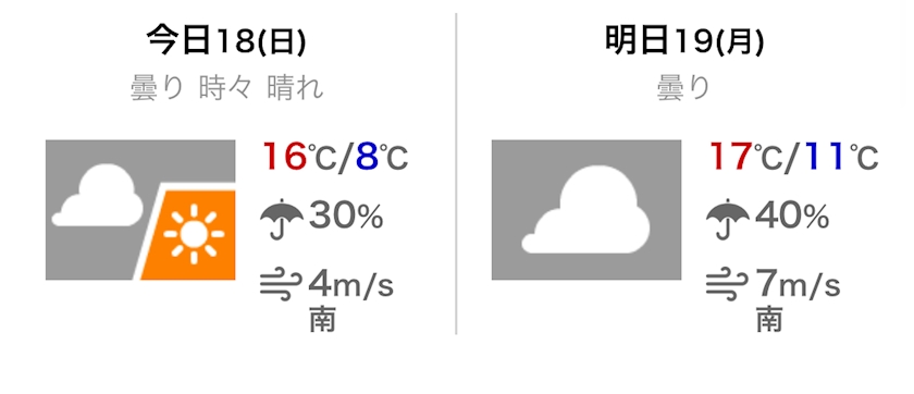 最高気温は16℃の予報です。