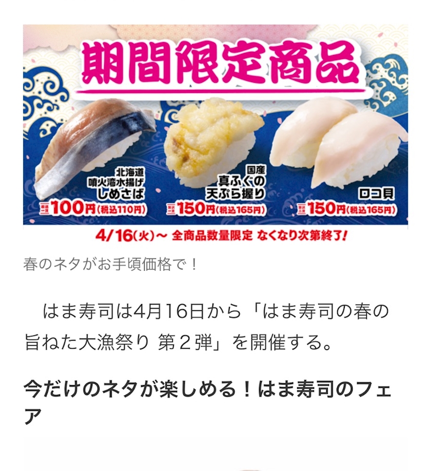 「はま寿司の春の旨ねた大漁祭り」