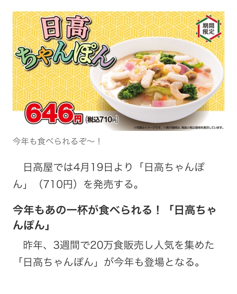 日高屋の「ちゃんぽん」再び!