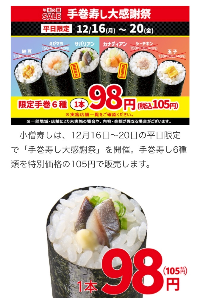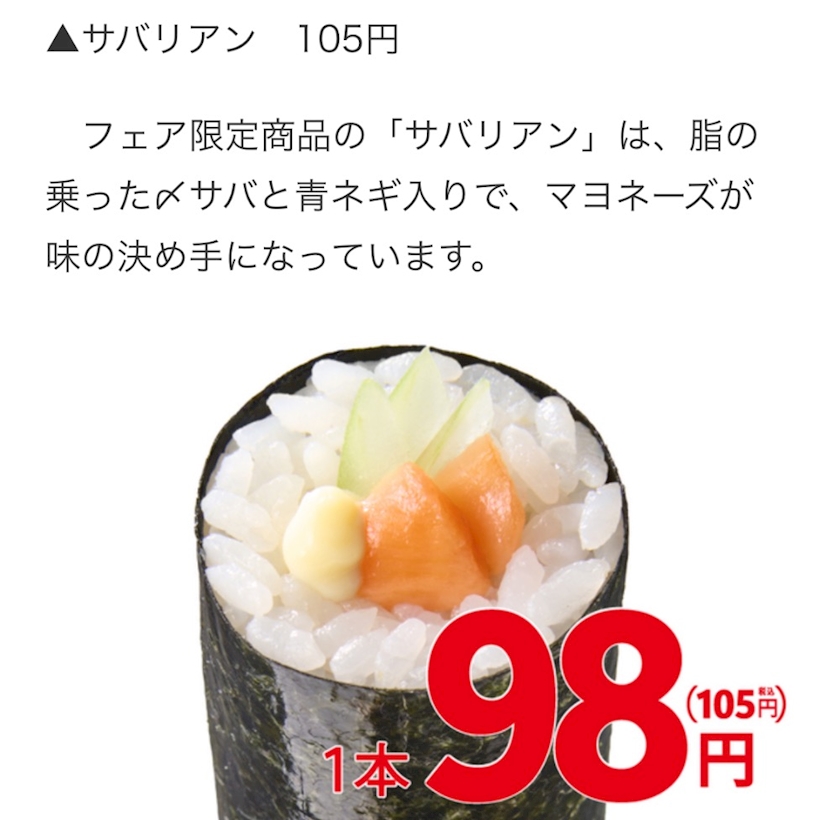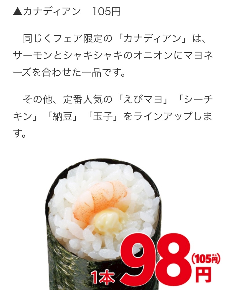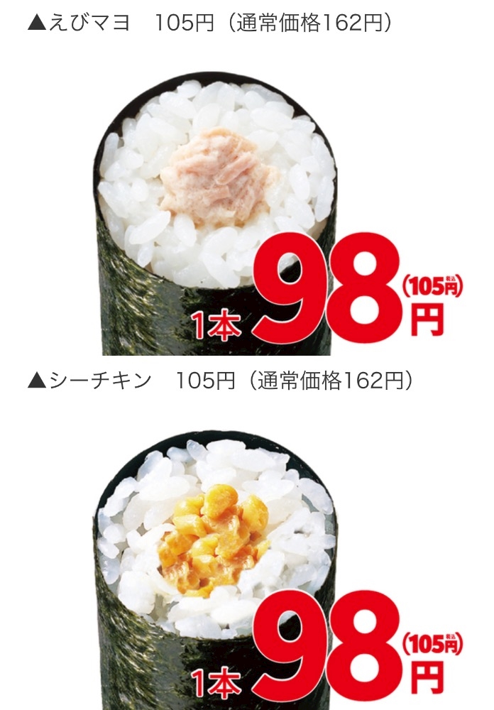 手巻寿し6種類が1本105円!