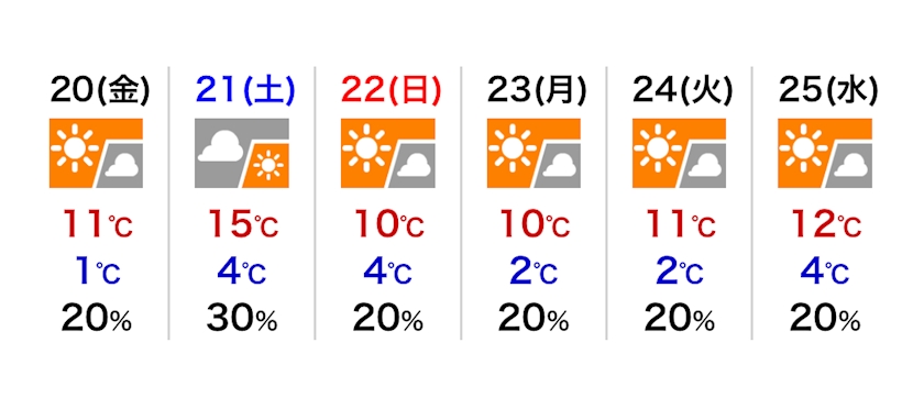 最高気温は8℃の予報です。
