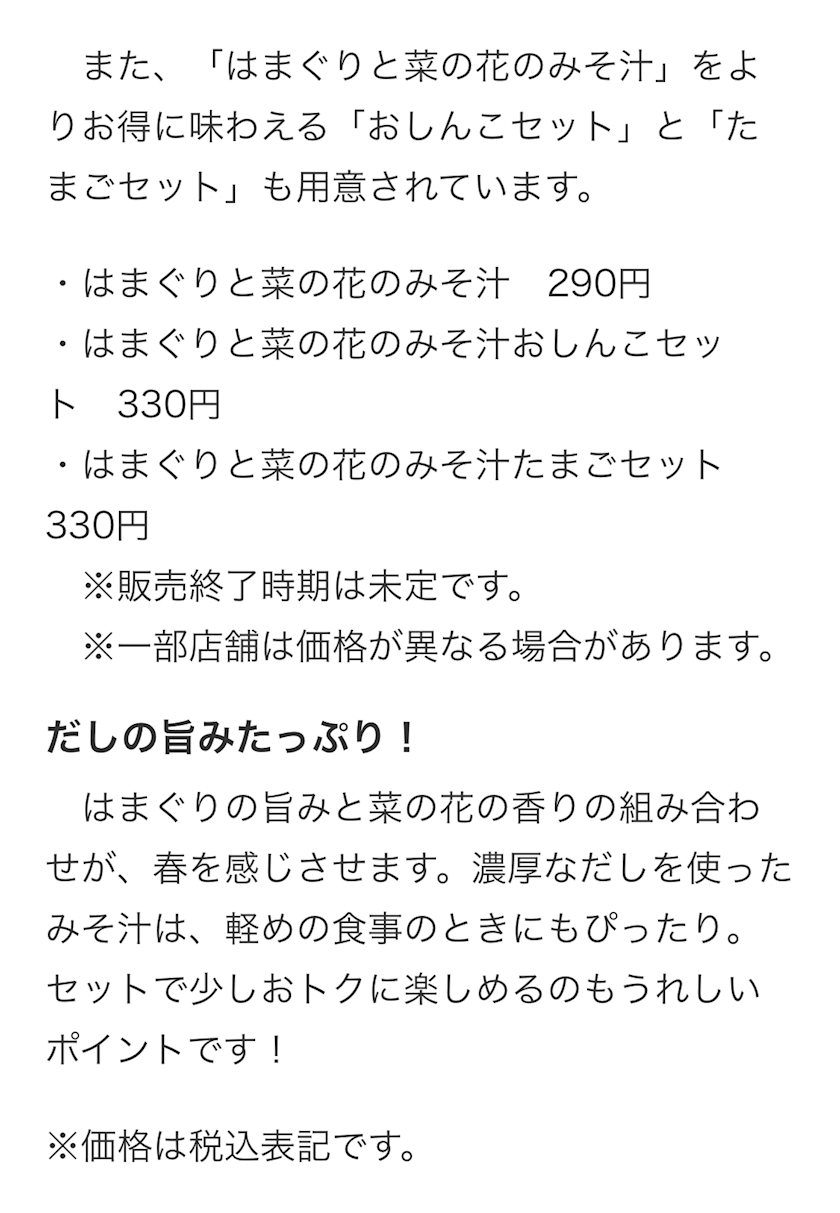 「はまぐりと菜の花のみそ汁」のご紹介でした