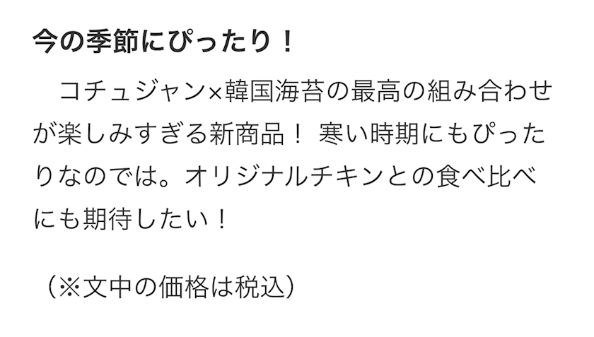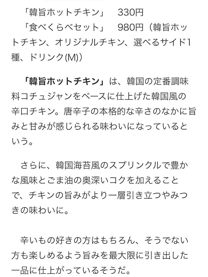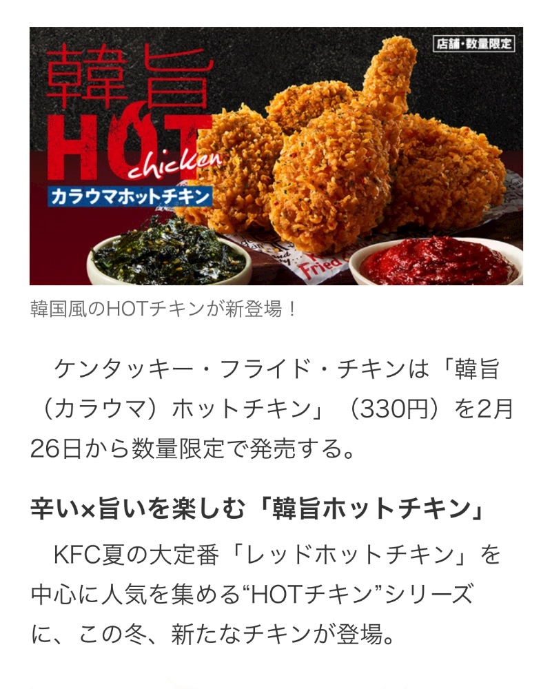 「韓旨(カラウマ)ホットチキン」のご紹介でした