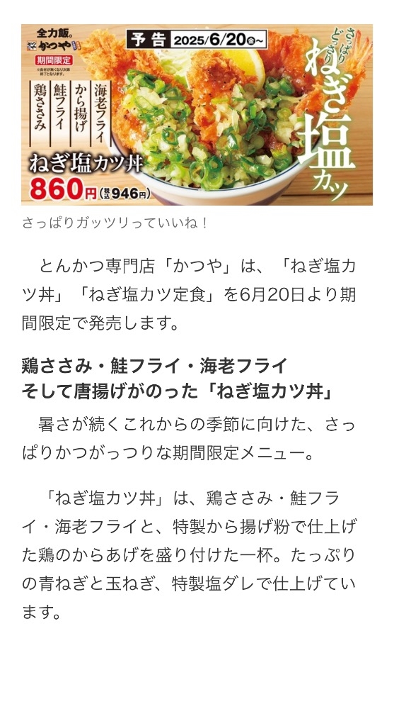 「ねぎ塩カツ丼/定食」のご紹介でした