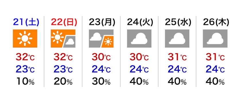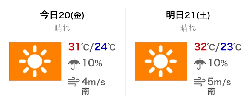 最高気温は31℃の予報です。