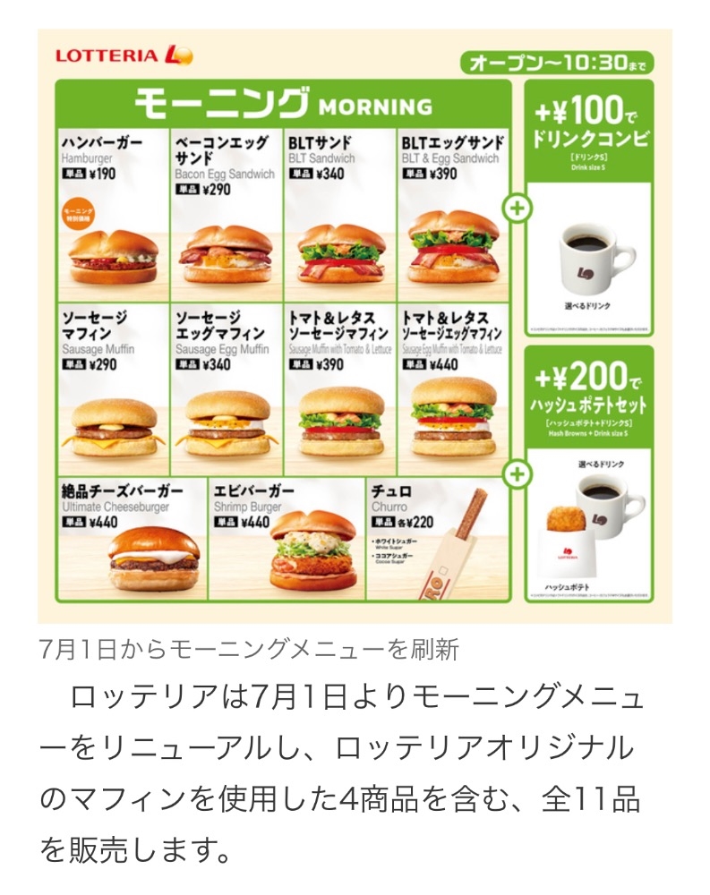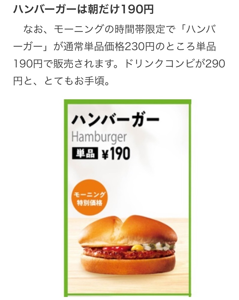 モーニングバーガー190円~!