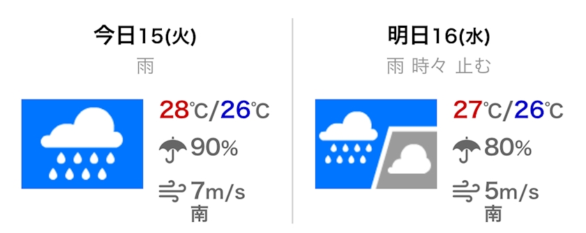 最高気温は28℃の予報です。