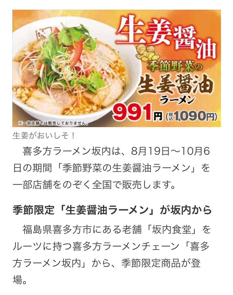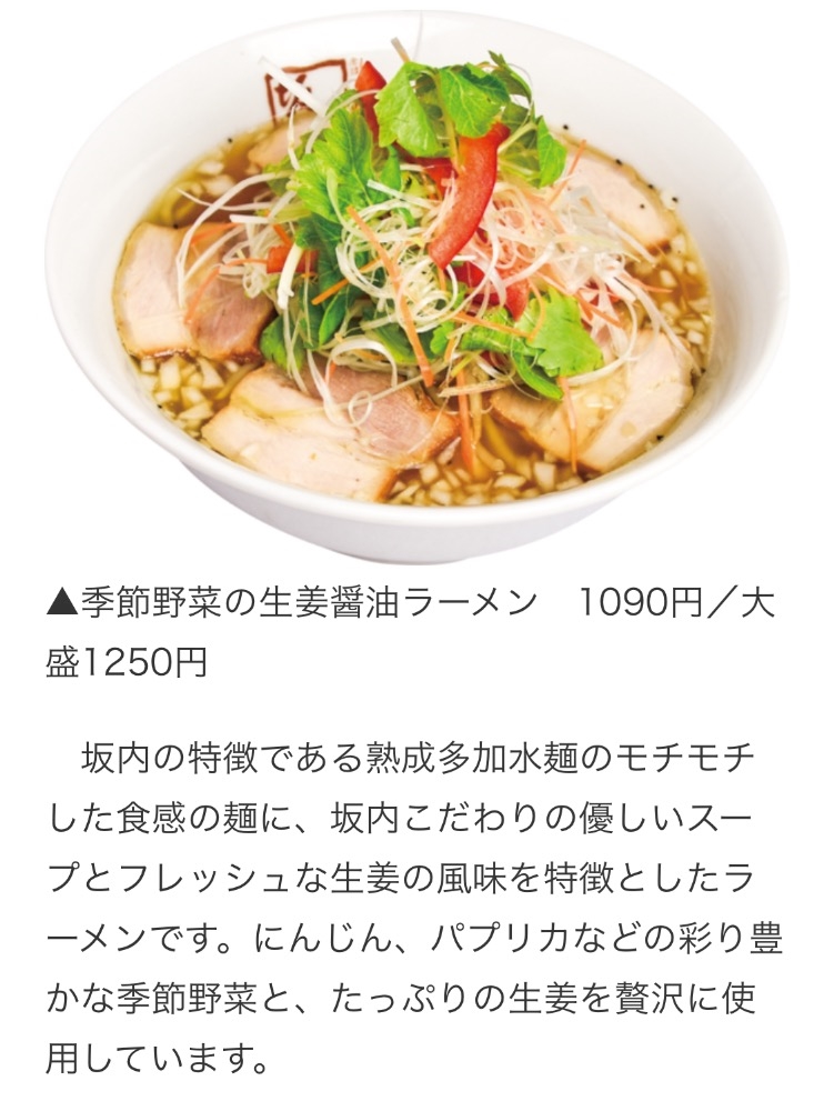 「季節野菜の生姜醤油ラーメン」のご紹介でした