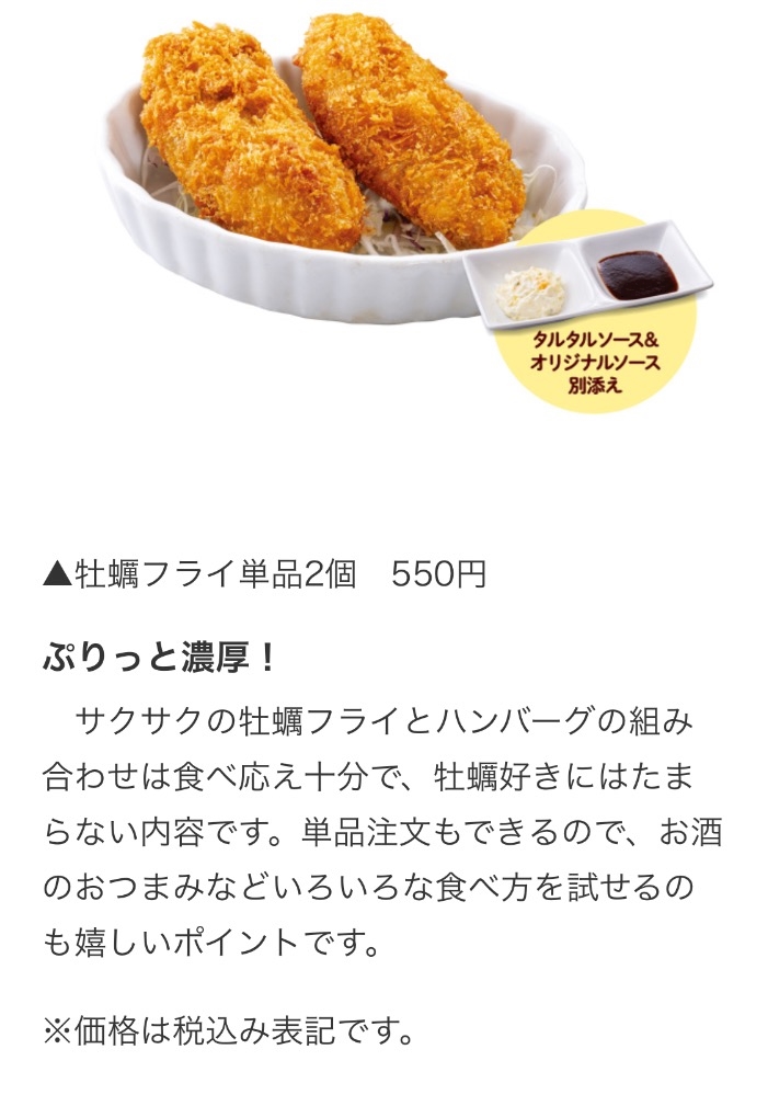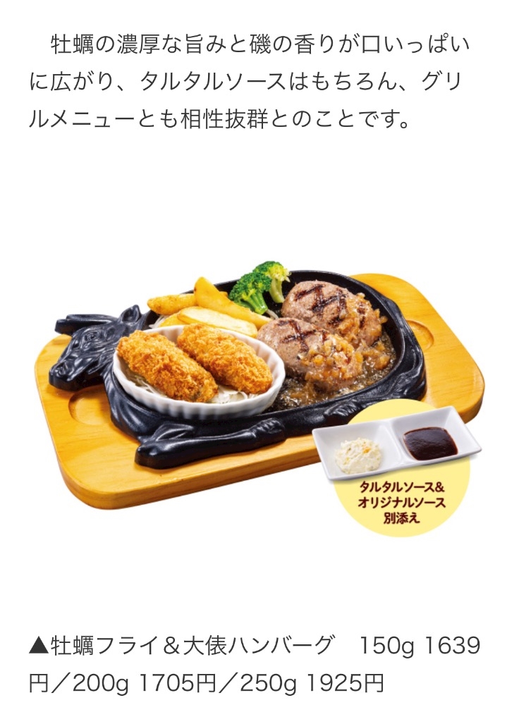 “牡蠣フライ&大俵ハンバーグ”がリッチ!