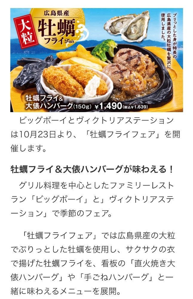 「牡蠣フライフェア」のご紹介でした
