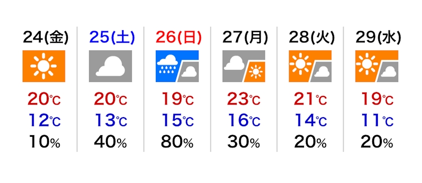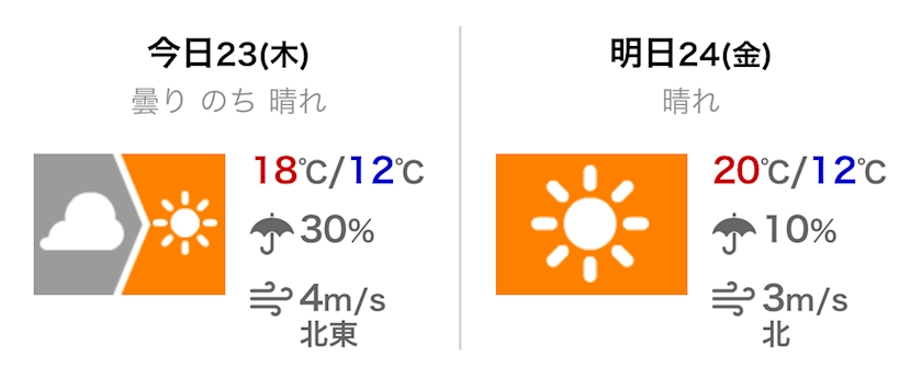 最高気温は18℃の予報です。