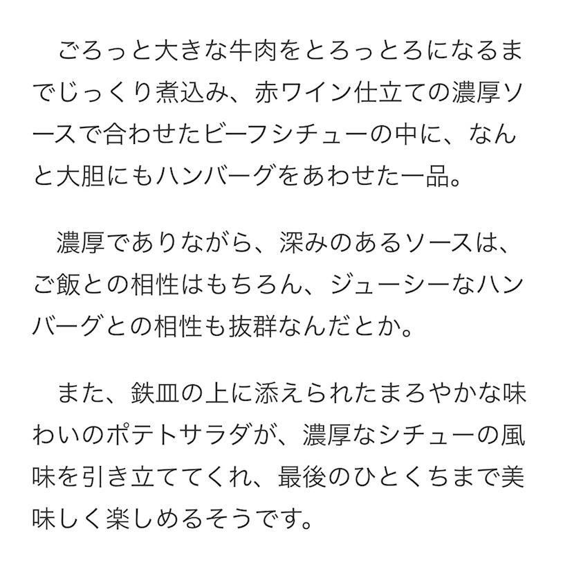 「煮込みビーフシチュー」