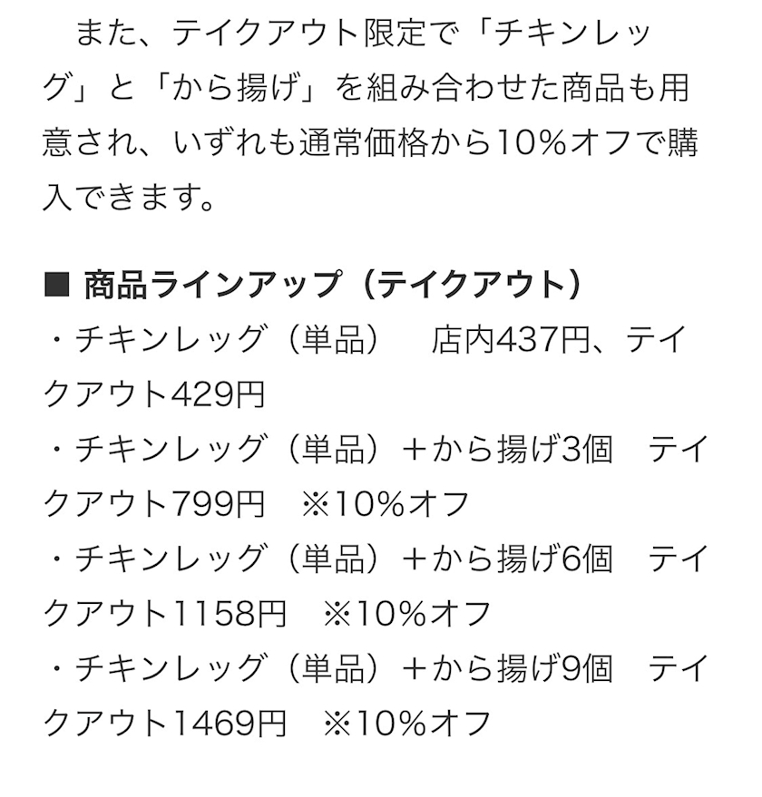 「チキンレッグ」のご紹介でした