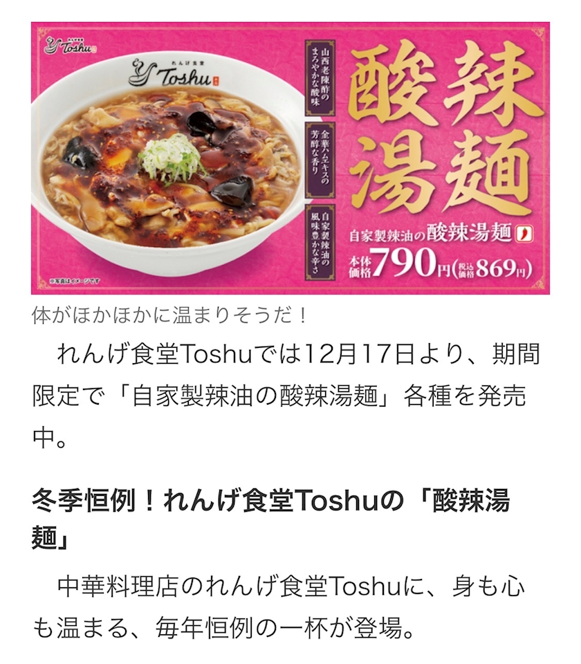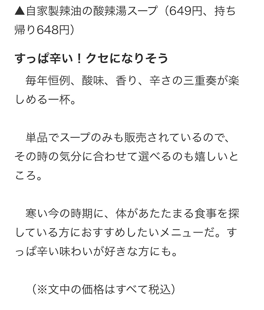 「自家製辣油の酸辣湯麺」各種のご紹介でした