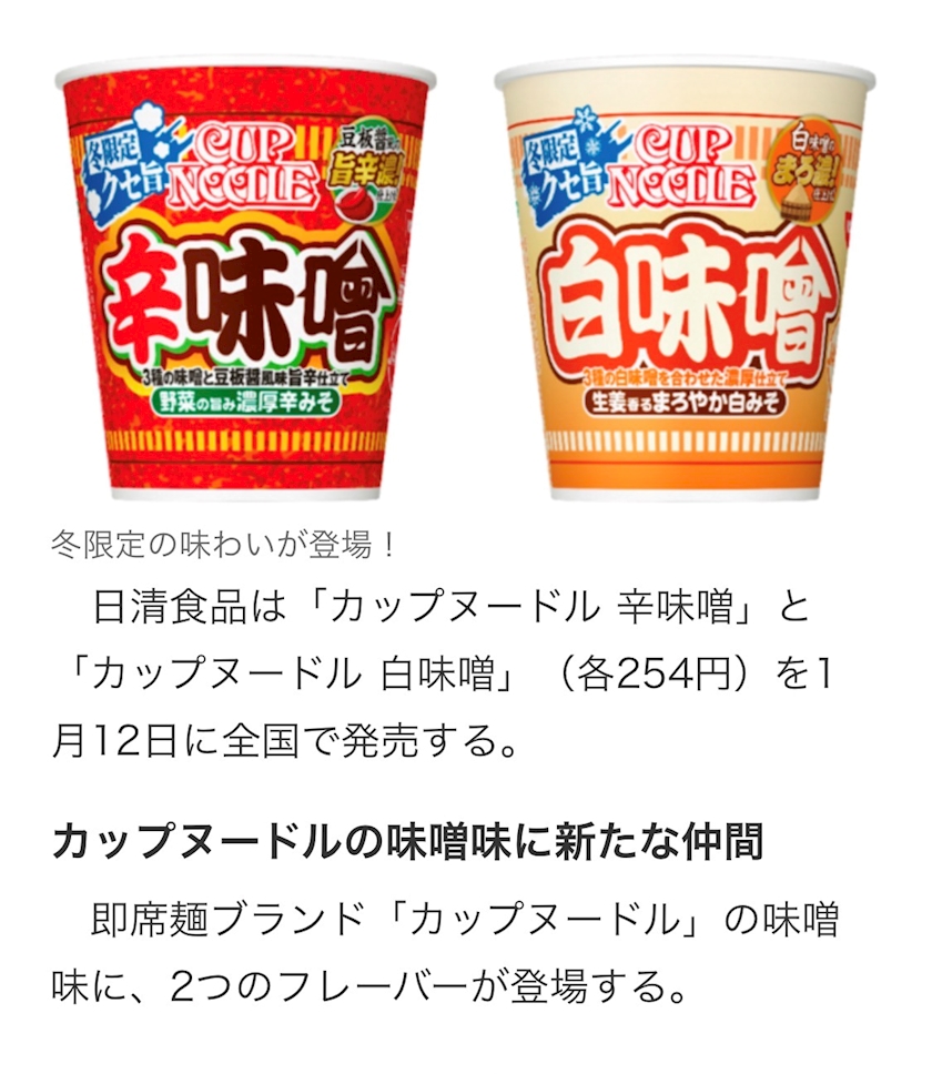 「カップヌードル 白味噌」のご紹介でした