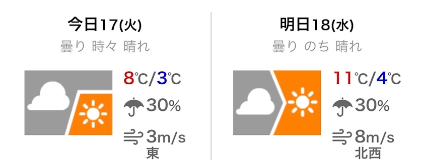 最高気温は8℃の予報です。