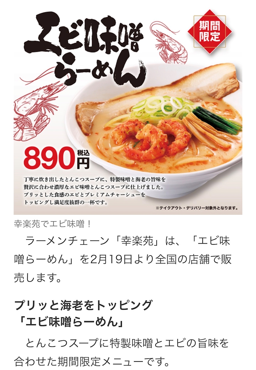 新作「エビ味噌らーめん」登場