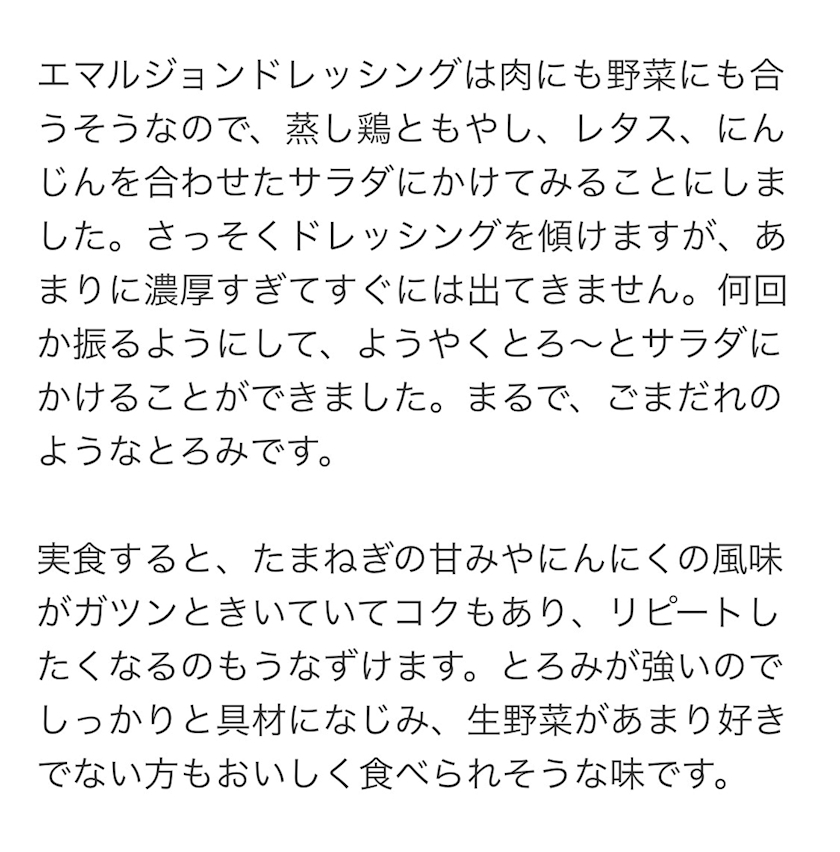 「エマルジョンドレッシング」のご紹介でした