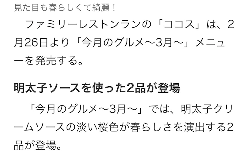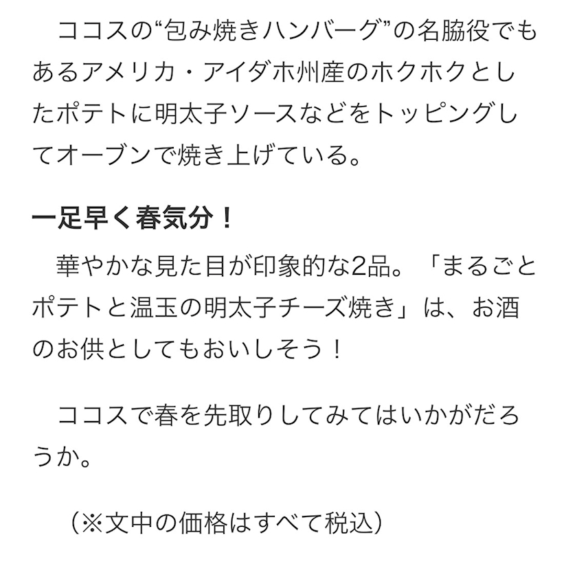「今月のグルメ〜3月〜」のメニュー