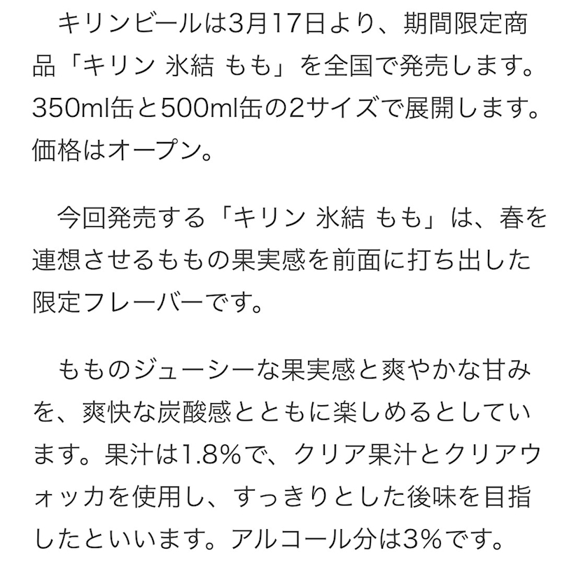 「キリン 氷結 もも」のご紹介でした