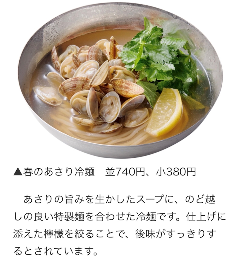 「春のあさり冷麺/温麺」のご紹介でした